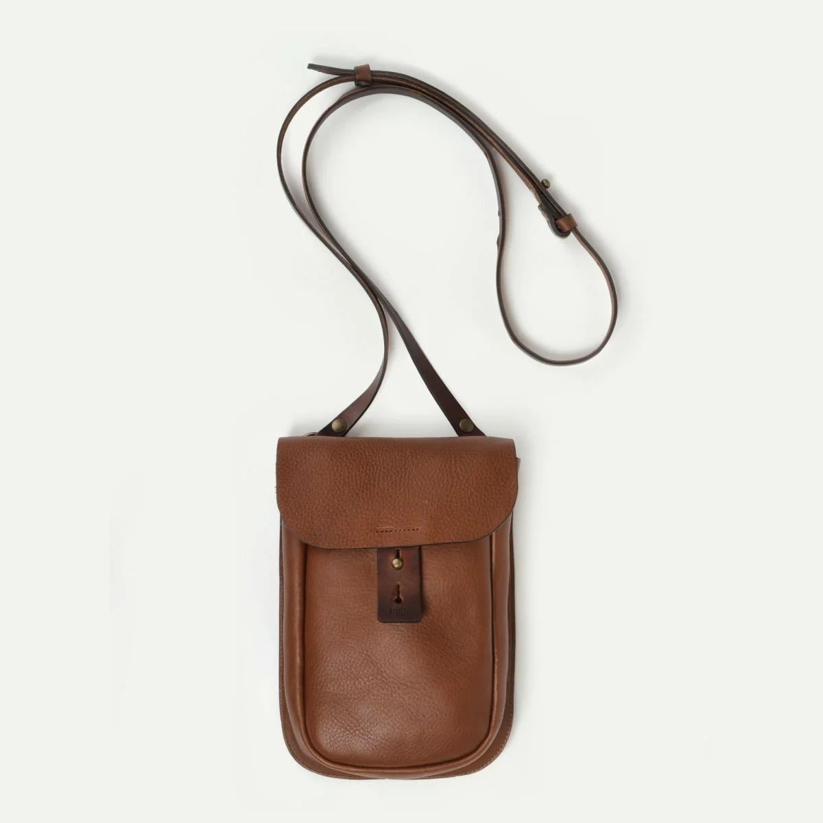 WORKWEAR MESSENGER BAG The Cartel Cartouchiere, with its vertical ‘telegram bag’ format, is a revisited version of our iconic Cartouche bag, but still with that chic, authentic workwear look. The Cartel has a spacious main compartment with plenty of room to keep your wallet and other valuables close at hand, as well as a second large interior compartment, ideal for your cellphone or other items. With its adjustable strap, the Cartel Cartouchiere can be carried over the shoulder or across the chest, making it a perfect match whatever your outfit. Made from vegetable-tanned leather, it boasts a unique patina that will become more beautiful over time. Whether in town or on an open-air excursion, the Cartel Cartouchiere is the ideal companion – a compact, practical bag to keep your essentials safe in style! The inner compartment is dated and signed by the artisan who made the bag, a guarantee of impeccable artisanal quality. Dimensions: L 17cm X H 25cm X D 6cm Made in France. MATERIALS Today, more than 90% of leather in the world undergoes a chrome tanning process which uses heavy chemical components. Bleu de Chauffe has a different approach. Our leather is vegetable tanned which ensures better quality and more sustainable leather, a soft natural touch, and a patina which improves over the years. - Vegetable-tanned full-grain leather, water-resistant - Natural soft finish. - Sanded velour finish on the reverse side - Adjustable leather strap. - Cotton Bleu de Chauffe label inside, signed and dated by the artisan who made the bag. - Brass finish button stud keyhole closure - Brass finish ring on the rear of the bag to attach a key fob. SIZE External dimensions: L 17cm X H 25cm X D 6cm Internal dimensions: L 18cm X H 24cm X D 5cm Strap dimensions Adjustable length: 97 cm to 145 cm Drop length*: 45 cm to 70 cm Width: 1,4 cm *the drop length is the distance between the top of the bag and the top of the strap The strap is designed to be incredibly versatile: with its adjustable length, you can decide whether you want to carry it over the shoulder or across the chest. It is 1,4cm wide, ensuring the weight is spread evenly and guaranteeing optimal comfort even when worn for an extended period.