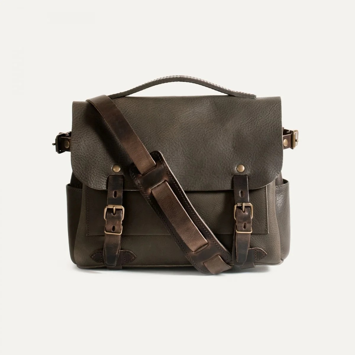 LIGHT LEATHER CARTABLE BAG A shoulder bag made from vegetable tanned leather. With its convenient quick opening system, the Eclair bag can be carried either in the hand or over the shoulder, thanks to the removable leather strap. It has three outside pockets including one with a flap closure, and a built-in felt sleeve for an 11-inch laptop. The Bleu de Chauffe label, signed and dated by the artisan who created the bag, is sewn on an inside zippered pocket. Size: L 31 x H 24 x W 10 cm Handmade in France. MATERIALS Today, more than 90% of leather in the world undergoes a chrome tanning process which uses heavy chemical components. Bleu de Chauffe has a different approach. Our leather is vegetable tanned which ensures better quality and more sustainable leather, a soft natural touch, and a patina which improves over the years. - Full grain leather, vegetable tanned and water resistant. - Natural finish, soft to the touch. Handmade patina. - Leather with a ‘velvet’ finish on the reverse. - Removable leather strap and comfortable leather shoulder pad lined with natural felt. - A leather handle makes it comfortable to carry by hand. - Removable inside zippered cotton pocket. - Integrated felt sleeve for laptops. - The Bleu de Chauffe Logo with a brass finish, inspired by 20th century French faucets. The work-wear signature. SIZE - External dimensions: L 31 x H 24 x W 10 cm - Internal dimensions of main compartment: L 25 X H 19 cm (for laptops up to 11 inches) - Internal dimensions of felt pocket : L 26 x H 20 x W 5 cm (for laptops up to 11 inches)