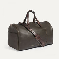 LEATHER TRAVEL BAG The "Hobo" is the new Bleu de Chauffe signature travel bag, for your short or long trips. Made from the highest quality vegetable tanned leather, it has one outside front compartment for a notebook, a camera, a phone, or a passport, and two side pockets. The large zip opening ensures you can easily access your belongings. The Bleu de Chauffe label, sewn onto an inside cotton pocket, is signed and dated by the artisan who created the bag. Size: L 48 x H 30 x W 25 cm Volume: 30 liters. Handmade in France. MATERIALS Today, more than 90% of leather in the world undergoes a chrome tanning process which uses heavy chemical components. Bleu de Chauffe has a different approach. Our leather is vegetable tanned which ensures better quality and more sustainable leather, a soft natural touch, and a patina which improves over the years. - Full grain leather, vegetable tanned and water resistant. - Natural finish, soft to the touch. Handmade patina. - Leather with a ‘velvet’ finish on the reverse. - Removable leather strap and comfortable leather shoulder pad lined with natural felt. - A leather handle makes it comfortable to carry by hand. - Removable inside zippered cotton pocket. - The Bleu de Chauffe Logo with a brass finish, inspired by 20th century French faucets. The work-wear signature. SIZE - Cabin-luggage sized. - External dimensions: L 48 x H 30 x W 25 cm - Volume: 30 liters.