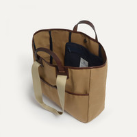 CANVAS AND LEATHER TOTE BAG Meline, the canvas and leather tote with a two-way carrying system Our new Meline tote is a chic new version of the utilitarian bag, functional and stylish. With its generous format and meticulous design, it is great in any situation: daily shopping, a last-minute escapade, or a busy day. Made from British Millerain coated cotton canvas, renowned for its resistance to water and wear, the Meline is as practical as it is attractive. The high-quality twill cotton canvas (590g/m²) provides great protection for your belongings, while retaining a fine texture and soft touch. The vegetable-tanned leather details reinforce the bag and add a touch of class. Its two-way carrying system, in the hand or over the shoulder, makes for effortless use. It also has two front pockets, 19.5 by 19cm, ideal for keeping your essentials close at hand. The perfect unisex bag, it fits seamlessly with an urban, laid-back look. Thanks to the SNAP system, you can easily add a laptop sleeve to transform it into a business bag. Dimensions: L38cm x H35cm x D13cm Made in France. The inside zipped pocket is dated and signed by the artisan who made the bag. MATERIALS For the Meline tote, we have selected an iconic coated cotton canvas designed by British Millerain, world leaders in the art of weaving and coated materials. The Meline tote is made from 18oz lick wax tweed canvas from the British Millerain brand. This 590g/m² canvas is a cut above the rest, with its super-close weave that gives it exceptional resistance to wear and stretch, making it an essential fabric for leatherwork and luggage. The carefully-applied dry wax gives it a non-greasy feel and provides full protection against the weather, ensuring durability and comfort in urban environments. - Details and handles in vegetable-tanned leather - Beige Straps. - Zipped closure with YKK zipper - Large rear zipped pocket - Inside removable zipped pocket dated and signed by the artisan who made the bag - Bleu de Chauffe label SIZE - Dimensions: L38cm x H35cm x D13cm- Volume: 15L - Front pocket dimensions: L19.5cm x H 19cm Handles and strap dimensions Handle length: 27cm Strap length: 71cm Strap drop length*: 27cm Handle width: 2cm Strap width: 4cm, 2cm in the middle *the drop length is the distance between the top of the bag and the top of the strap. The handles and straps have been designed to make the bag incredibly versatile: it can be carried in the hand using the handle or over the shoulder with the straps. Their width ensures the weight is spread evenly and gives a good grip, ensuring optimal comfort even when carried for a long time.