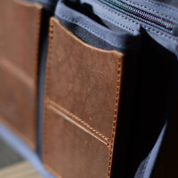 MULTI-COMPARTIMENT POCKET A simple and stylish cotton and leather multi-compartment pocket for all your essentials. The pouch fits into all Bleu de Chauffe bags thanks to the SNAP system (not including Joan/Jordi bags, Pastel S and L bags ). Size: L 22,5 x H 17,8 cm Each pouch is made in France. MATERIALS - Cotton canvas and vegetable tanned leather. - Metal closing zipped SIZE - Size: L 22,5 x H 17,8 cm - One big zipped pocket. - Two folp-up pockets (for pens and so on) - Four patch pockets for your cards, USB keys...