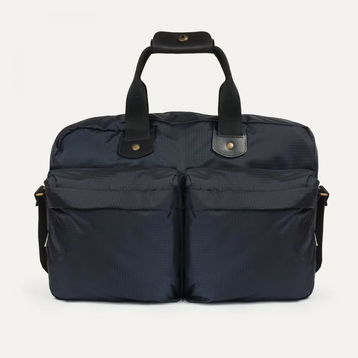 Inspired by photo-journalist’s bags of the previous century, the Paraglyde business bag embodies a new kind of practical elegance. Designed for business or urban travel, it subtly blends utilitarian heritage with modern hi-tech features. It is compact yet spacious, with room for all your day-to-day business essentials: laptop, documents, accessories… Two front zipped pockets give you quick access to your cables, notebook, or wallet. There is a zipped pocket on the inside to keep your valuables safe, and a felt-lined pocket for a laptop up to 16 inches. Its dual carrying system, either in the hand using the strap handles with their saddlery leather trim or over the shoulder with the strap, makes it incredibly versatile. There is a leather inset on the back for a telescopic suitcase handle – ideal for regular travelers. Size : L41 x H29 x D9.5 cm Each bag is signed and dated by hand by the artisan who created it at our workshop in St George de Luzencon. MATERIALS The Paraglyde business bag is made from double Ripstop nylon, a hi-tech material inspired by air sports equipment. Used to make paragliders and parachutes, this material, produced by a renowned Italian manufacturer, is incredibly lightweight and highly resistant to wear and tear. It features a subtle grid pattern, a sign of its strength and character. The handles and details are in vegetable-tanned leather, rooted in the saddlery tradition, reinforcing the bag at strategic points while keeping an upmarket esthetic. The full-grain leather evolves over time, taking on an elegant patina. Every piece is made entirely in France at our workshop in Saint-Georges-de-Luzencon, and is proud to show off our two labels: “Bleu de Chauffe, Made in France” and the name of our Aveyron village. - Vegetable-tanned leather inset - Handles and shoulder strap in black cotton - Zipped closure. YKK zipper - Two front zipped pockets - Built-in felt-lined laptop sleeve - Removable inside zipped cotton pocket dated and signed by the artisan who made the bag - Bleu de Chauffe and St George de Luzencon labels SIZE - External dimensions: L41 x H29 x D9.5 cm - Internal dimensions of felt-lined pocket: L39.5 x H27 (to fit 13”, 14”, and 15” laptops, compatible with 16” MacBook Pro). We recommend measuring your laptop to check compatibility Handles and shoulder strap dimensions: Handle length: 44.5 cm Shoulder strap length: 68 cm to 130 cm Handle drop length*: 15 cm Shoulder strap drop length*: 15 cm to 46.5 cm Handle width: 4 cm, 2 cm in the center Shoulder strap width: 4 cm *the drop length is the distance between the top of the bag and the top of the strap or handles.