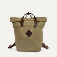 MEN'S AND WOMEN'S ROLL TOP BACKPACK The Woody is the quintessential Bleu de Chauffe canvas bag, with an outdoor, ‘military’ disposition that makes this range unique. The 25L Woody backpack is a reinvention of old climbing bags. You can wear it as a traditional backpack, or as a hand luggage, thanks to its handles. The Woody backpack is made from stone washed cotton canvas. This high-quality canvas provides complete protection for your belongings, with a stylish weave that is soft to the touch. The vegetable-tanned leather handles, strap, and details add a touch of class while strengthening the bag. The bag integrates 2 outside compartments with a top magnetic closure or a zipper for your accessories as cell phone, wallet, passeport, notebook….It has high storage capacity and fits perfectly for your belongings and a 13” laptop or 15" laptop. The Woody backpack is compatible with the Milan laptop sleeve thanks to the SNAP system. The Bleu de Chauffe label, signed and dated by the artisan, is sewn on an inside zipped pocket. Size : H 42 x L 35 x W 17 cm Volume: 25 liters. Handmade in France. The Woody backpack can be completed with our “PECT” chest strap sold separately (Palissander color), for bike or motorcycle use. MATERIALS Made with the same cotton canvas fabric used to renovate the famous Jeep Willis collector hood. The Bleu de Chauffe canvas is supplied by the very last French canvas manufacturer. - Details in vegetable-tanned leather - Felt shoulder straps for more comfort. - One outside zipped pocket: 27 cm (H) x 19 cm (L) - One outside back pocket with magnetic button closure: 15 cm (H) x 22 cm (L) - One outside front pocket: 16 cm (H) x 20 cm (L) - Inside removable zippered cotton pocket. - Metal details with a bronze finish. - Embossed Bleu de Chauffe logo with a bronze sheen. SIZE - External dimensions: H 42 x L 35 x W 17 cm - Internal dimensions of main compartment: H 41 x L 34 x W 17 cm (for laptops up to 15 inches) - SNAP concept: Thanks to the SNAP concept, you can add a "Milan" felt computer cover to the inside of the backpack to suit your needs. (sold separately) - Volume: 25 liters. We recommend measuring your computer to check it will fit. The braided Leather keychain shown in the photo of the mannequin is sold separately.