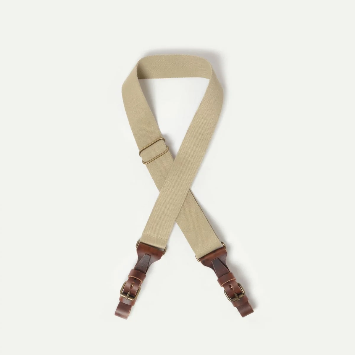WOODY BUSINESS BACKPACK STRAP This removable shoulder strap allows you to transform your Woody business bag into a practical and comfortable backpack. Perfect for cycling trips or extended getaways, this shoulder strap offers a versatile solution to complement your Woody Business bag! Each piece is made in our workshop in Saint-Georges de Luzencon, France. This strap (sold separately) completes the first strap which is included in every Woody Business bag, and transforms your Woody Business bag into a backpack. MATERIALS - Adjustable shoulder strap. Vegetable-tanned leather inserts. - Adjustable strap for a personalized fit. SIZE Strap dimensions Adjustable length: 76 cm to 118 cm Drop length*: 20 cm to 44 cm Width: 4 cm *the drop length is the distance between the top of the bag and the top of the strap The strap is designed to be incredibly versatile: with its adjustable length, you can decide whether you want to carry it over the shoulder or across the chest. It is 4 cm wide, ensuring the weight is spread evenly and guaranteeing optimal comfort even when worn for an extended period.