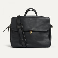 MEN'S COMPUTER BAG The Zeppo Solo is quintessential Bleu de Chauffe workwear chic in a pared-back format. This younger brother to our iconic business bag keeps the elegance and signature features of the line, with a more lightweight build: a single zipped compartment, stripped down to the essentials without compromising on style. Designed for professional everyday use, it is comfortable to carry thanks to the handles reinforced with a piece of braided cotton cord. Inside is a spacious compartment, a felt sleeve for laptops up to 16 inches, and a zipped cotton pocket signed by hand by the artisan who made the bag. On the outside you will find the iconic pocket under the flap, perfect for a magazine or notebook, secured with a thoroughly vintage closure engraved with the Bleu de Chauffe logo. On the back is a leather strip made to fit a suitcase handle: perfect for travel. A small front pocket closed by magnetic top, is perfect for keeping all your essentials close at hand: keys, wallet, cellphone, and more... Size: W 40 x H 29 x 12 cm Made in France – every bag is made with care by the artisan leathersmiths at Bleu de Chauffe in our workshop in the Aveyron region. MATERIALS The Zeppo Solo is made from full-grain vegetable-tanned leather, treated using natural agents such as mimosa, acacia, and chestnut. This artisanal process makes the leather hard-wearing, naturally waterproof, and soft to the touch. Over time, it will develop a unique patina, a reflection of your adventures and your story. - Full-grain vegetable-tanned leather, water resistant - Natural soft finish - Sanded velour finish on the reverse side - Removable leather shoulder strap with felt-lined shoulder pad. - Built-in felt laptop sleeve. - Removable inner zipped pocket in cotton canvas, dated and signed by the artisan who made the bag. - A leather strip to attach the bag onto a suitcase handle - Bleu de Chauffe logo in a brass finish, inspired by traditional ceramic taps. The workwear signature. - YKK zipper SIZE - External dimensions: L40 x H29 x D12 cm - Internal dimensions of felt sleeve: L38 x H26 cm (to fit laptops up to 16” MacBook Pro) - Internal dimensions of main compartment: L39 x H28 x D11 cm (to fit laptops up to 16”) - Large front pocket with flap for files or magazines. Tuc closure. - Small outside front pocket. Magnetic top closure to keep your essentials close at hand. We recommend measuring your computer to check it will fit Shoulder strap dimensions: Adjustable length: 117 cm to 132 cm Shoulder strap drop length*: 38 cm to 47 cm Shoulder pad width: 5 cm *the drop length is the distance between the top of the bag and the top of the shoulder strap The strap is designed to be incredibly versatile: with its adjustable length, you can decide whether you want to carry your bag over the shoulder or across the chest. The 5 cm-wide pad ensures the weight is evenly distributed, guaranteeing optimal comfort even when carried for long periods.