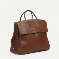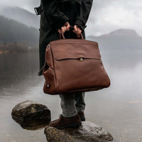 LEATHER TRAVEL BAG The ZOOM is the new travel bag from the Bleu de Chauffe Premium collection, made from vegetable-tanned leather. With its workwear attitude and minimalist design, the ZOOM is a cross between a 48h weekend bag and a tote. Elegant and practical, the ZOOM has a large outside pocket concealed under a flap with a quick-access fastening, for your laptop, papers, or magazines. The interior is also super easy to access – with its long zip, the bag opens right up. The handles are reinforced with 100% natural rope and finished in full-grain leather: a combination which makes them extra-comfortable to carry, supple, and hard-wearing. A wide colored band across the front is the signature feature of the items in the ZOOM range. Bleu de Chauffe has added a touch of class to this chic and contemporary range with a clasp engraved with a gold finish. Size: L 45 x H 40 x W 22 cm Volume: 40 liters. Every Bleu de Chauffe bag is made in France with passion by our artisan leathersmiths. MATERIALS While 90% of the leather produced in the world is tanned using chrome or heavy-duty chemical agents, Bleu de Chauffe has decided to go against the grain, choosing the only alternative manufacturing process: vegetable tanning, a natural method which makes the leather more hard-wearing and gives it a natural look and feel, as well as a beautiful patina over the years. - Full-grain vegetable-tanned leather, water resistant. - Naturally soft finish. - Sanded velour finish on the reverse side. - Leather handle, making it comfortable to carry by hand. - Tuck lock clasp with a goldl finish. - Removable inner zipped pocket in cotton canvas. - Bleu de Chauffe logo in a brass finish, inspired by traditional ceramic taps – the spirit of workwear. SIZE - Cabin-luggage sized. - Volume: 40 liters. - External dimensions: L 45 x H 40 x W 22 cm - Dimensions of front compartment with tucklock clasp: L 42 cm x H 32 cm