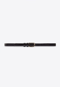 BELT IN CALF SKIN MORE DETAILS - Embossed black lizard - Narrow belt featuring a horseshoe buckle - 2 cm - Adjustable belt - Light gold metal hard wear - Adjustable buckle closure - Double belt loops
