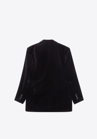 Double breasted evening jacket in black velvet, peak lapel and four buttons closure, two jetted pockets at waist and welt pocket at chest. MORE DETAILS - 100% Cotton - Four-button cuffs - Double vents at back - Decorative AMF stiches - Full canvas construction and roped shoulder - Half lined.
