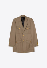 Saharienne jacket in cavalry twill with notch collar, 2 buttons closure and 4 patch pockets with flap. MORE DETAILS - 100% Wool - Fully lined - Full canvas construction and roped shoulder - Classic fit - 4 patch pockets with flap - Gold crest buttons - Four-button cuffs - Fully lined