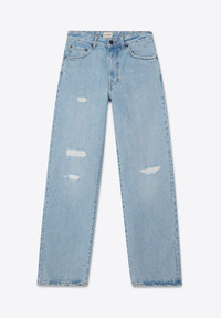 Interpretation of an authentic '90s style. The iconic leg shape with the modern effortlessly cool feel, a jean with a little bit of ’90s attitude. These jeans sit high on your waist features a straight leg and are relaxed through your leg down to the hem. MORE DETAILS - An authentic well used vintage look with holes and distressed elements and the authentic vintage hand feel. - High waist - Straight leg - Relaxed thigh & knee with a loose straight leg silhouette. - 5-pocket styling - Zip fly - 6 belt loops – 2 beltloops at CB - Denim 100%co - organic cotton - Model is 190 cm / 6′23 and wears a size 29/34