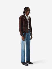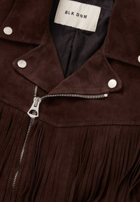 Motorcycle jacket in suede with fringes and epaulets. Two slanted zip pockets, waist band with belt and zip cuffs. Side seam adjusters with leather cord. MORE DETAILS - 100% goat suede - Asymmetrical zip closure - Two interior pockets - Viscose lining - Fully lined - Classic Slim Fit