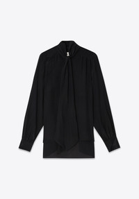 Silk lavalliere-neck shirt. MORE DETAILS - 75% Acetate 25% Silk - Loose fit - Concealed button closure - Lavalliere-neck - Double button cuffs with light puff - Small gathering at back and front yoke