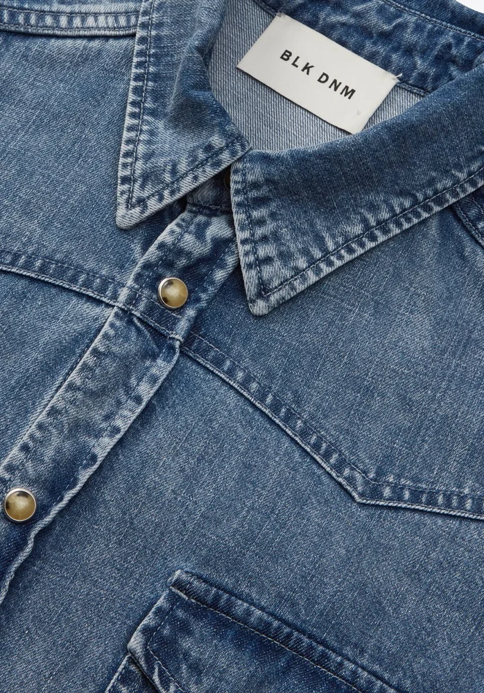 Classic BLK DNM western shirt with 70s inspired collar. MORE DETAILS - 100% Organic Cotton - Classic fit - Center front closure with western press buttons - Two chest pockets - 70s inspired Collar - Three press button sleeve cuffs