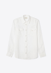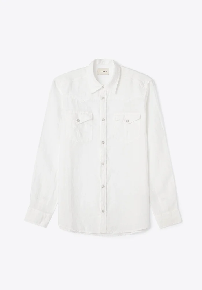 Classic BLK DNM western shirt with 70s inspired collar. MORE DETAILS - 100% Linen - Classic fit - Center front closure with western press buttons - Two chest pockets - 70s inspired Collar - Three press button sleeve cuffs