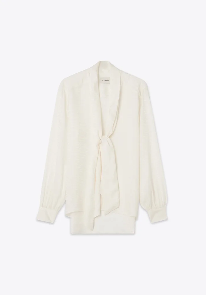Silk zebra jacquard lavalliere-neck shirt with low neckline. MORE DETAILS - 63% Cupro Bemberg 37% Silk - Loose fit - Concealed button closure - Lavalliere-neck - Double button cuffs with light puff - Small gathering at back and front yoke