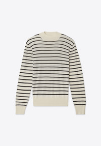 Striped mock neck sweater in ultra-fine wool and silk. MORE DETAILS - 70% Wool 25% Silk - Fitted sweater - Mock neck - Ribbed trims.