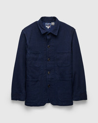 Double Cloth Sashiko Coverall Jacket in Pure Indigo