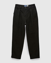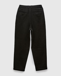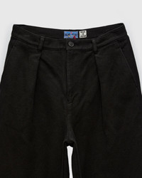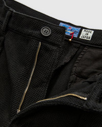 The Sashiko Trousers by Blue Blue Japan seamlessly marry contemporary tailoring with traditional Japanese sashiko fabric. Renowned for its exceptional durability and history in martial arts, this Double Cloth Sashiko fabric sports a substantial feel and loosely-woven texture. The trousers are hand-dyed a deep black color, yielding soft solid tone that will patina with wear and flourish with age. Finished with a double pleated front, welted pockets, and a Japanese YKK zipper fly. - Hand-dyed deep black - Double cloth sashiko fabric - Relaxed tapered fit, roomy top block with taper throughout - Japanese YKK zipper fly - Two slant front pockets, two rear welt pockets - 100% cotton - Made in Japan