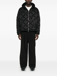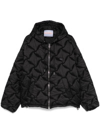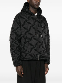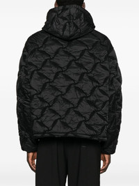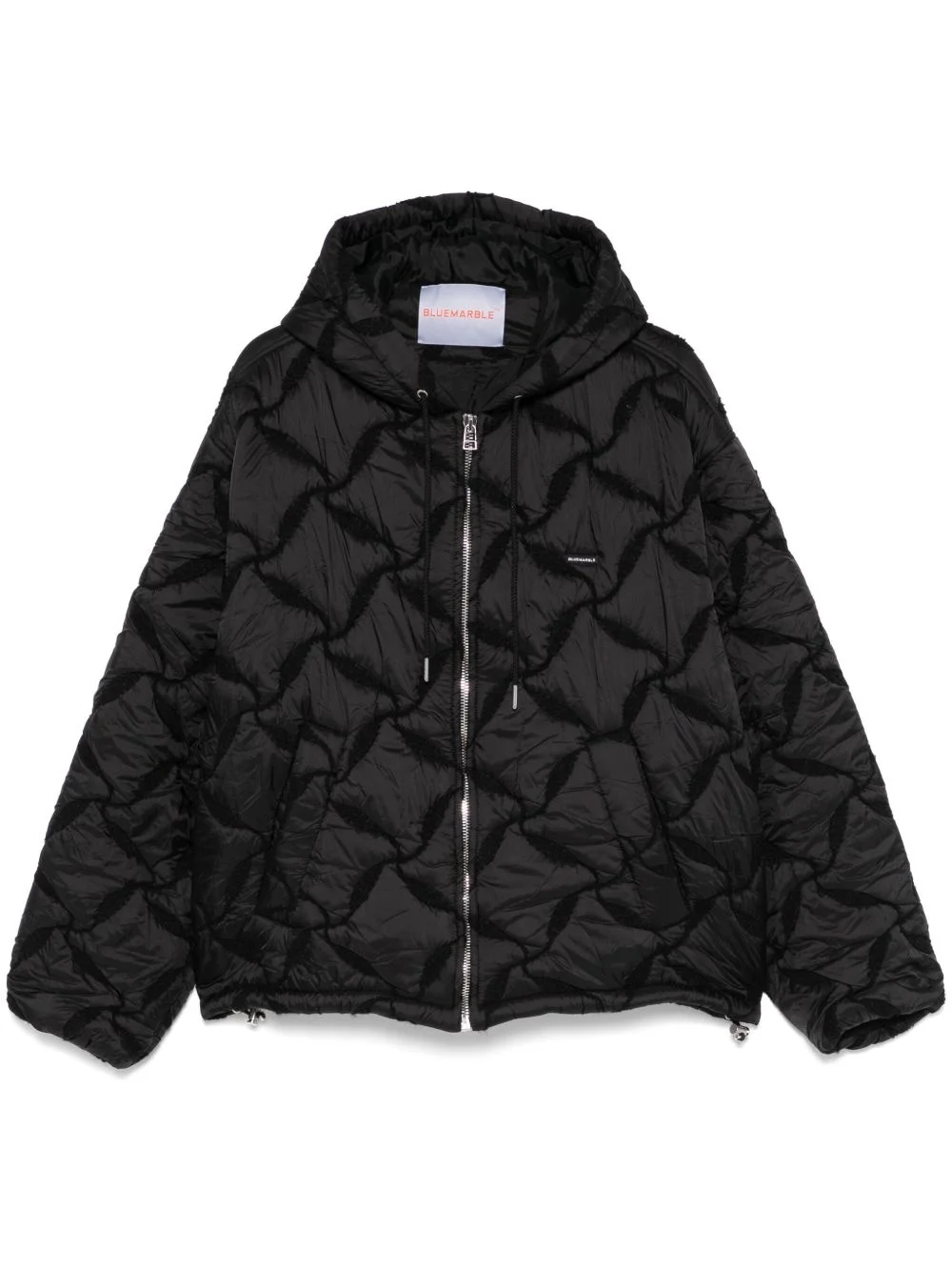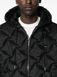 hooded bomber jacket Highlights - Black - Front zip fastening - Quilted finish - Drawstring hood - Two side slit pockets Imported Composition Lining: Polyester 100%, Acetate 100% Outer: Polyester 78%, Polyamide 22% SIZE & FIT Model measurements Height 6 ft 2 in(1.87 m) Bust/Chest 36.41 in(92.5 cm) Hips 37 in(94 cm) Waist 29.52 in(75 cm) FittingInformation Designed to be unstructured, offering a loose fit throughout The internal drawstring at the hem allows for fitted preferences Made from a quilted non-stretch fabric, giving it no natural elasticity