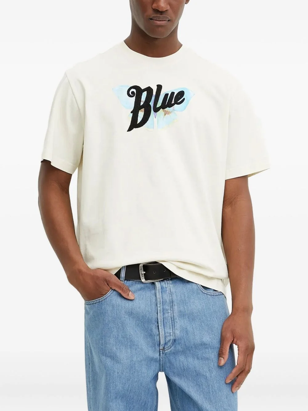 butterfly-print T-shirt Highlights - Off-white - Butterfly motif - Embroidered lettering - Short sleeves - Crew neck Imported Composition Cotton 100% Washing instructions Read Manufacturer Guidelines