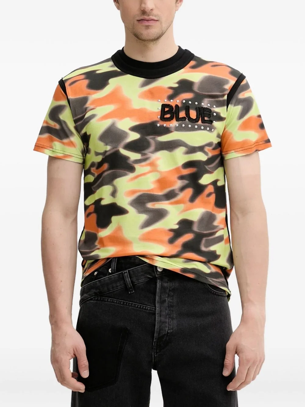 camouflage-print embellished T-shirt Highlights - Orange - Camouflage print - Short sleeves - Crew neck - Embellished lettering Imported Composition Cotton 100% Washing instructions Read Manufacturer Guidelines