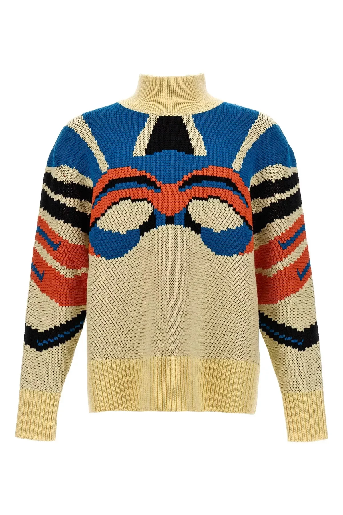 cod. SW27KN21B23YEL Jacquard wool sweater with high neck, long cuffed sleeves. Color: Multicolor Size & Fit: true to size fit Composition: 100% virgin wool Made in: Turkey