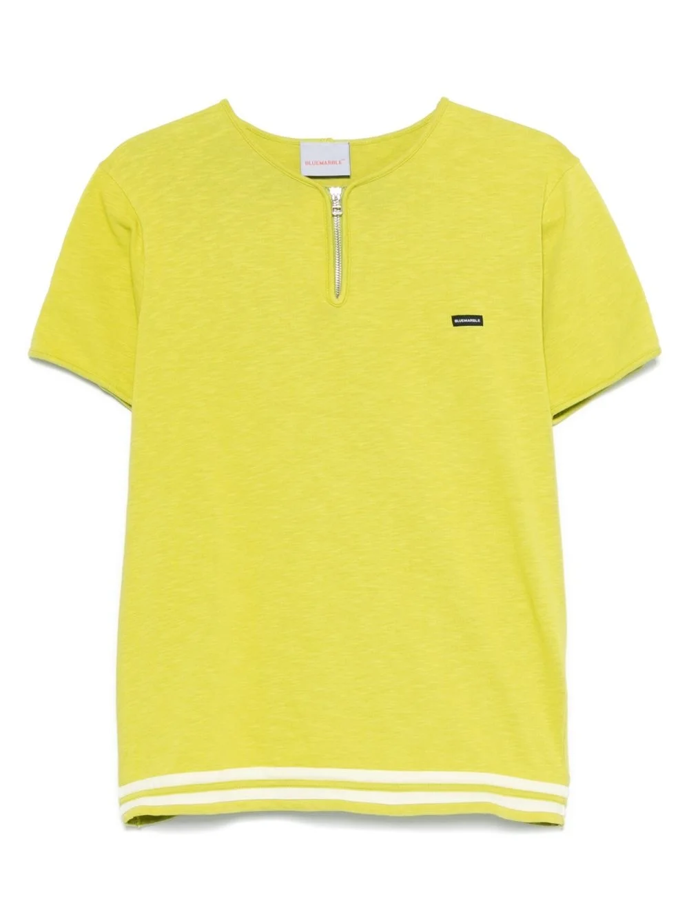 logo-patch T-shirt Highlights - Lime green - Short front zip fastening - Crew neck - Short sleeves - Stripe detailing Imported Composition Cotton 100% SIZE & FIT Model measurements Height 6 ft 1 in(1.85 m) Bust/Chest 38.18 in(97 cm) Hips 36.61 in(93 cm) Waist 31.49 in(80 cm) FittingInformation Designed for a slim fit, offering a comfortable fit that sits just away from the body Made from a midweight non-stretch fabric, this piece offers minimal elasticity when worn