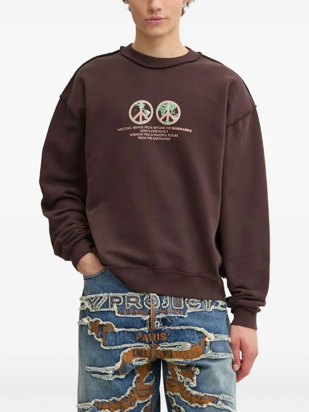 peace-globe print sweatshirt Highlights - Brown - Raw edge - Peace symbol print - Straight hem Imported Composition Cotton 100% Washing instructions Read Manufacturer Guidelines