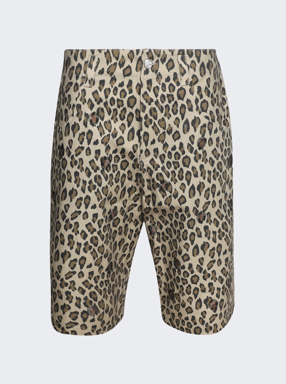 Details - Baggy fit - Long shorts style - Four-pockets styling - Sprinkled crystal-cut detailing - Engraved silver-tone hardware - Belt loops - Zip-fly Dimensions: Model is 6'1"/185cm and is wearing a size US33 Composition: 100% Cotton Care: Care according to label Brand Style: SP10 TW24A24 LEO Designer/Brand: BLUEMARBLE