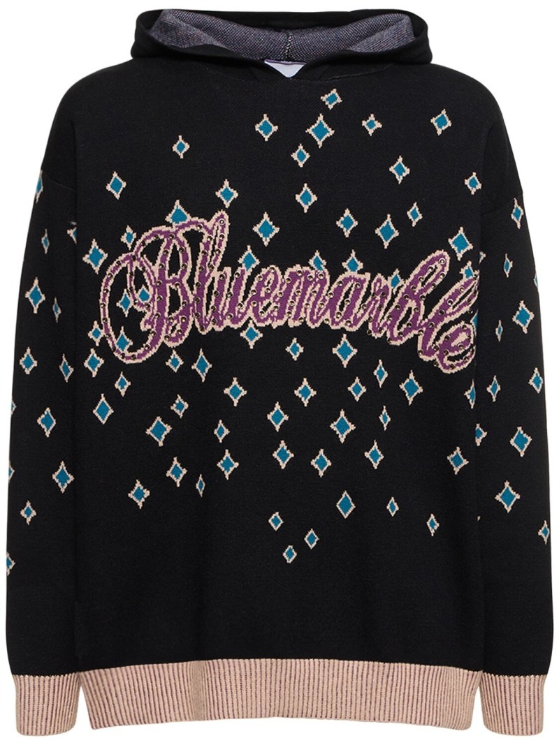 Jacquard rhinestones hooded jumper