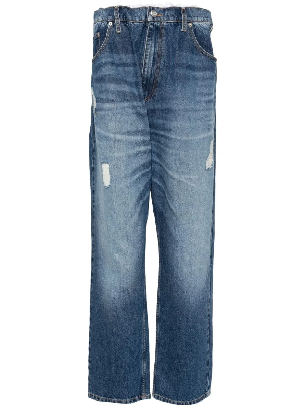 Trompe L'oeil jeans Highlights - Denim blue - Cotton - Denim - Pinstripe pattern - Concealed zip-fly and button fastening - Ribbed detailing - Layered design - Whiskering effect at the thighs - Belt loops - Classic five pockets - Logo patch to the rear - Full-length - Straight leg Imported Composition Cotton 100% SIZE & FIT Model measurements Height 6 ft 2 in(1.87 m) Bust/Chest 33.07 in(84 cm) Hips 35.43 in(90 cm) Waist 26.77 in(68 cm) FittingInformation Designed with a straight leg, these jeans allow for an unrestricted and comfortable fit over the leg Sturdy and hard-wearing, this denim piece offers no stretch Washing instructions Machine Wash