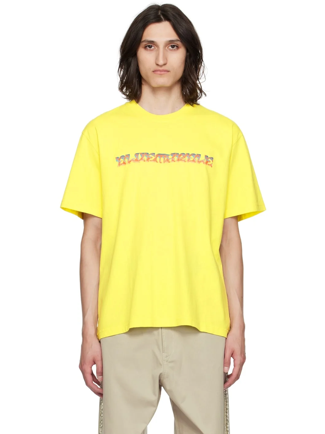 Cotton jersey T-shirt. · Rib knit crewneck · Logo graphic printed at front · Floral graphic printed at back Supplier color: Yellow 100% cotton. Made in Portugal 241950M213004