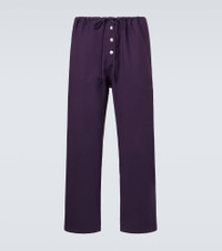 With the sole mission of telling stories through fashion, Bode creates nostalgic styles using historical techniques and vintage patterns. The Astor pants are cut from pure wool to a relaxed, wide-leg silhouette with a drawstring waist. Product Details - Material: 100% wool - Care instructions: dry clean - Made in Bulgaria - Designer color name: Purple - Item color: purple - Drawstring waist - Closure: buttoned front - Pockets: side slit pockets - Item number: P01049160 Size & Fit - True to size - Close fit at the hips - Adjustable at the waist - Non-stretchy fabric - Straight leg - The model in the picture is 185cm-6'1" and wearing a size L