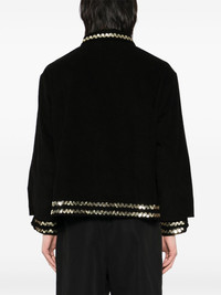 bandstand jacket Highlights - Black - Front two-way zip fastening - Classic collar - Two front welt pockets - Buttoned cuffs Imported Composition Outer: Cotton 100% Lining: Polyester 100% SIZE & FIT Model measurements Height 6 ft 2 in(1.87 m) Bust/Chest 33.07 in(84 cm) Hips 35.43 in(90 cm) Waist 26.77 in(68 cm) Measurement CHEST 51.18 in(130 cm) SLEEVE LENGTH 22.04 in(56 cm) HIPS 50.39 in(128 cm) LENGTH 25.59 in(65 cm) WAIST 50.39 in(128 cm) FittingInformation Designed for a boxy fit, intended for a loose fit throughout Made from a midweight non-stretch fabric Washing instructions Dry Clean Only