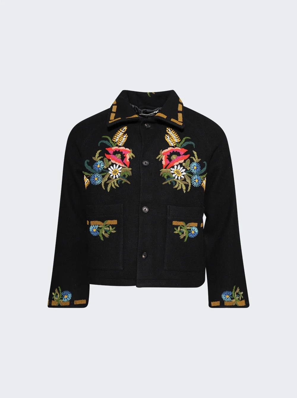 Details - Boxy fit - Long sleeves - Button closure - Two side pockets - Beaded embellishment - Straight hem - Care according to label - Material: 100% Wool Size Information: Vendor Color Code: Brand Style: MRF25OW005 Designer/Brand: BODE