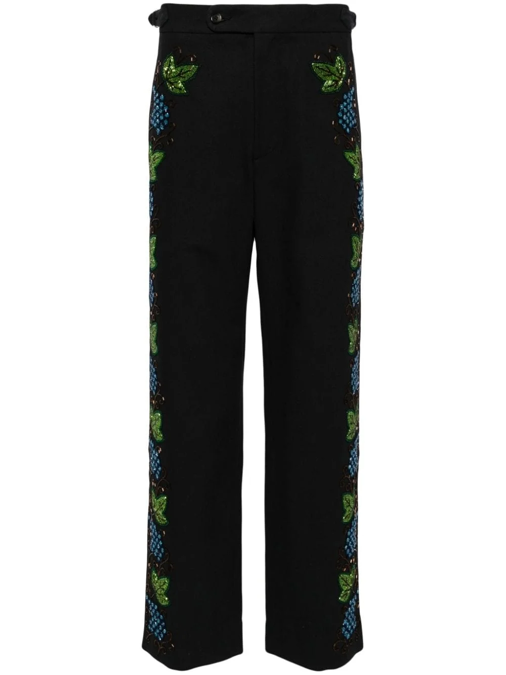 Beaded Concord embroidered trousers Highlights - Black/multicolour - Cotton - Embroidered design - Mid-rise - Concealed fly and button fastening - Side buckle fastening - Two side slash pockets - Two rear flap pockets - Straight leg Imported Composition Lining: Cotton 100% Outer: Cotton 100% SIZE & FIT Model measurements Height 6 ft 2 in(1.87 m) Bust/Chest 33.07 in(84 cm) Hips 35.43 in(90 cm) Waist 26.77 in(68 cm) FittingInformation Designed for a straight-leg, allowing for an unrestricted and comfortable fit over the leg The adjustable tabs allow for fitted preferences Made from a midweight non-stretch fabric This piece fits true to size – take your usual size