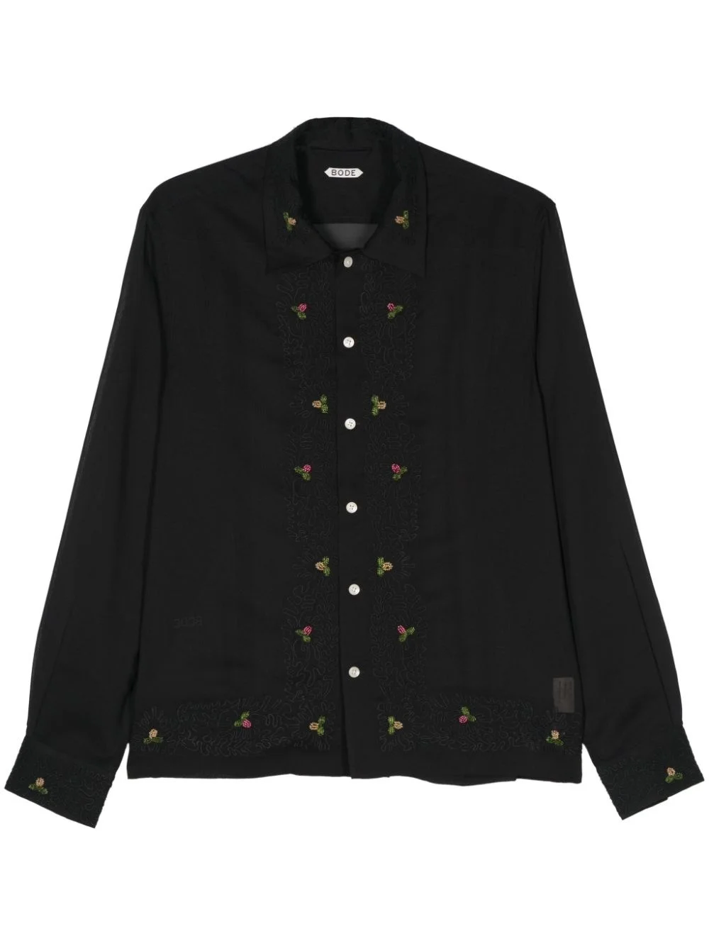 Beaded Framboise semi-sheer shirt Highlights - Black - Semi-sheer construction - Floral embroidery - Berries bead embellishment - Camp collar - Long sleeves - Buttoned cuffs - Straight hem - Front button fastening Imported Composition Polyester 100% SIZE & FIT Model measurements Height 6 ft 2 in(1.87 m) Bust/Chest 36.22 in(92 cm) Hips 37 in(94 cm) Waist 27.95 in(71 cm) FittingInformation Designed to be unstructured, offering a loose fit throughout Made from a lightweight non-stretch fabric This piece fits true to size – take your usual size