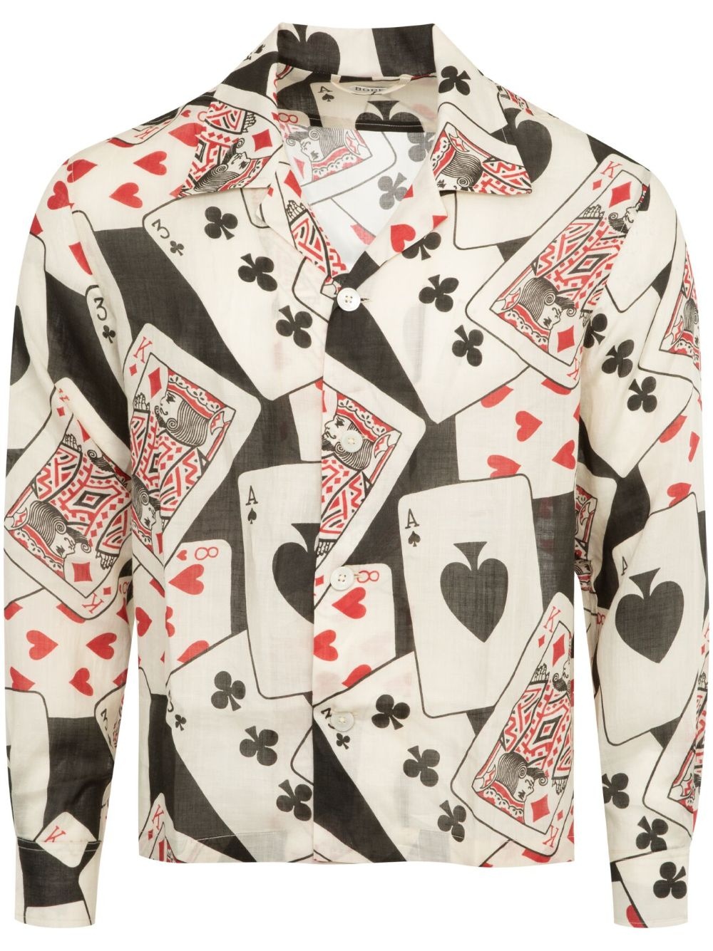 Ace of Spades-print long-sleeve shirt Highlights - Black/multicolour - All-over graphic print - Spread collar - Front button fastening - Long sleeves - Buttoned cuffs - Straight hem - We've partnered with good on you â an independent agency that rates how brands perform in relation to their impact on the planet, people and animals, with a multi-criteria rating simplified to a five points scale. in order to be awarded our conscious label, larger brands need to score a minimum of four out of five ('good'), while smaller brands must score at least three out of five ('it's a start'). - This item comes from a brand rated four out of five ('good') by good on you at the time it was added on farfetch. please note, this is a brand-level rating and does not guarantee that this product is made with conscious materials. - Learn more about what makes a product conscious on our conscious criteria page Imported Composition Ramie 100%