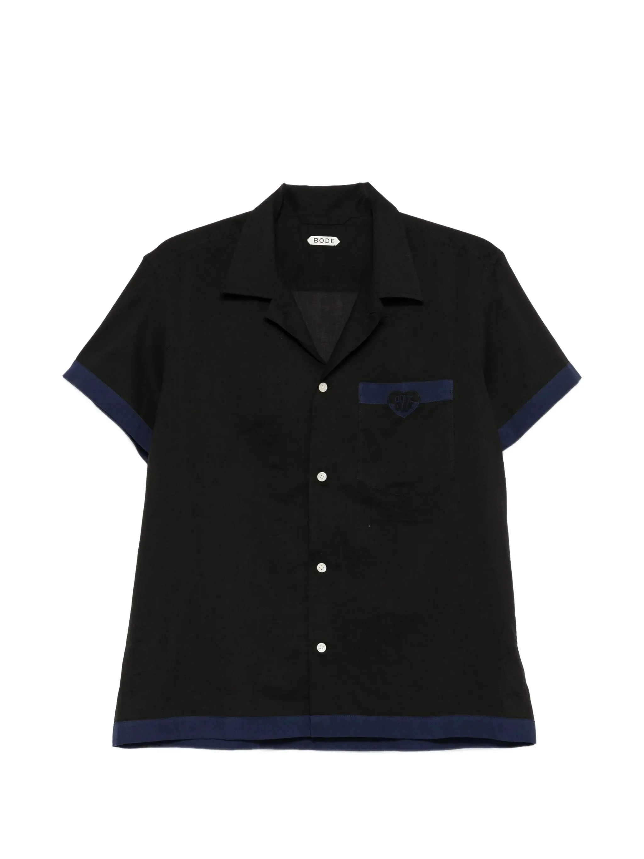 black heart detail patch pocket short sleeves button fastening notched collar - Color: BLACK/BLUE - Made in: India - Designer Style ID: MRS26SH034 NAVBK Composition and care Cotton: 100.0%