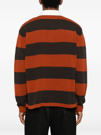 striped-collared polo shirt Highlights - Brown - Striped - Collared - Button fastening - Long sleeves - Embroidered logo Imported Composition Virgin Wool 100% SIZE & FIT Model measurements Height 6 ft 1 in(1.85 m) Bust/Chest 38.58 in(98 cm) Hips 37 in(94 cm) Waist 30.31 in(77 cm) Washing instructions Dry Clean Only