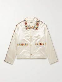 BODE's 'Candyfloss' track jacket is part of a set with the matching pants. It's cut for a boxy shape from lustrous satin and detailed with embroidered voile trims modelled on an organza collar from the '60s. Size & Fit - Those who are above 6'1"/ 185cm may wish to take the next size up - Mid-weight, non-stretchy fabric - Model is shown wearing a L - Model measures: chest 38"/ 96cm, height 6'2"/ 188cm Details & Care - Cream satin - Button fastenings - 100% polyester; buttons: 100% horn (Buffalo) - Dry clean