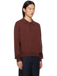 Knit cashmere polo. · Rib knit spread collar, hem, and cuffs · Three-button placket · Saddle shoulders This item is part of a limited run of 132. Supplier color: Brown