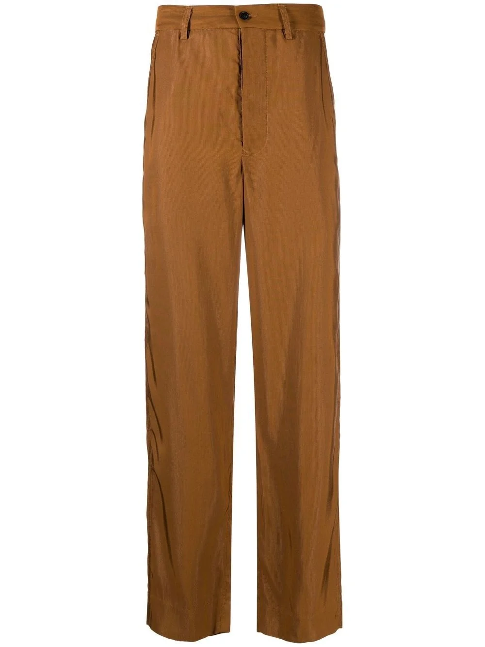 corduroy straight-leg trousers Highlights - Barley brown - Corduroy - High-waisted - Straight leg - Front button and zip fastening - Belt loops Made in United States Composition Outer: Viscose 100% Lining: Viscose 100% SIZE & FIT Model measurements Height 6 ft 1 in(1.85 m) Bust/Chest 35.82 in(91 cm) Hips 37.79 in(96 cm) Waist 29.13 in(74 cm) FittingInformation This piece fits true to size. We recommend you get your regular size Designed for a slim fit at the waist and loose over the leg Made with a mid-weight non-stretch fabric