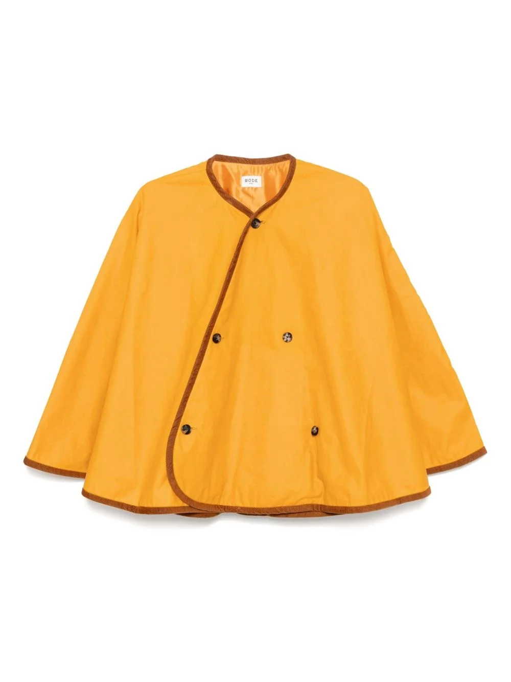 Waxed rain cape Highlights - Mustard yellow - Front button fastening - Contrasting trim Imported Composition Outer: Cotton 100% Lining: Polyester 100% SIZE & FIT Model measurements Height 6 ft 2 in(1.87 m) Bust/Chest 33.07 in(84 cm) Hips 35.43 in(90 cm) Waist 26.77 in(68 cm) Measurement CHEST 47.24 in(120 cm) LENGTH 23.62 in(60 cm) Shoulder Width 17.71 in(45 cm) SLEEVE LENGTH 27.55 in(70 cm) WAIST 47.24 in(120 cm) FittingInformation Designed to be unstructured, offering a loose fit throughout Made from a midweight non-stretch fabric Washing instructions Dry Clean Only