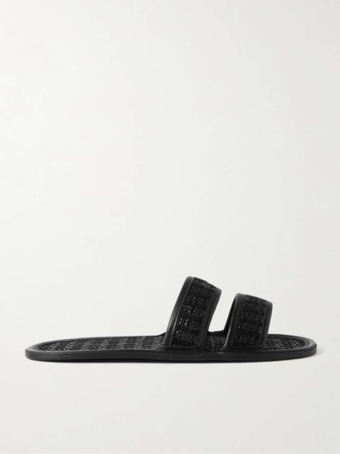 Duotone Leather-Trimmed Raffia Slides