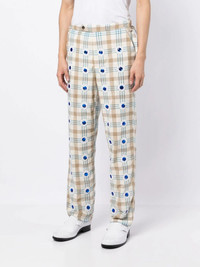 embellished checked straight-leg trousers Highlights - White/multicolour - Cotton - Gem embellishment - Check pattern - Front button and zip fastening - Two diagonal pockets to the sides - Two rear flap pockets - Straight leg Imported Composition Cotton 100% SIZE & FIT Model measurements Height 6 ft 2 in(1.87 m) Bust/Chest 34.25 in(87 cm) Hips 36.22 in(92 cm) Waist 29.52 in(75 cm) FittingInformation This piece fits true to size. We recommend you get your regular size Designed for a slim fit at the waist and loose over the leg Made with a mid-weight non-stretch fabric Washing instructions Dry Clean Only