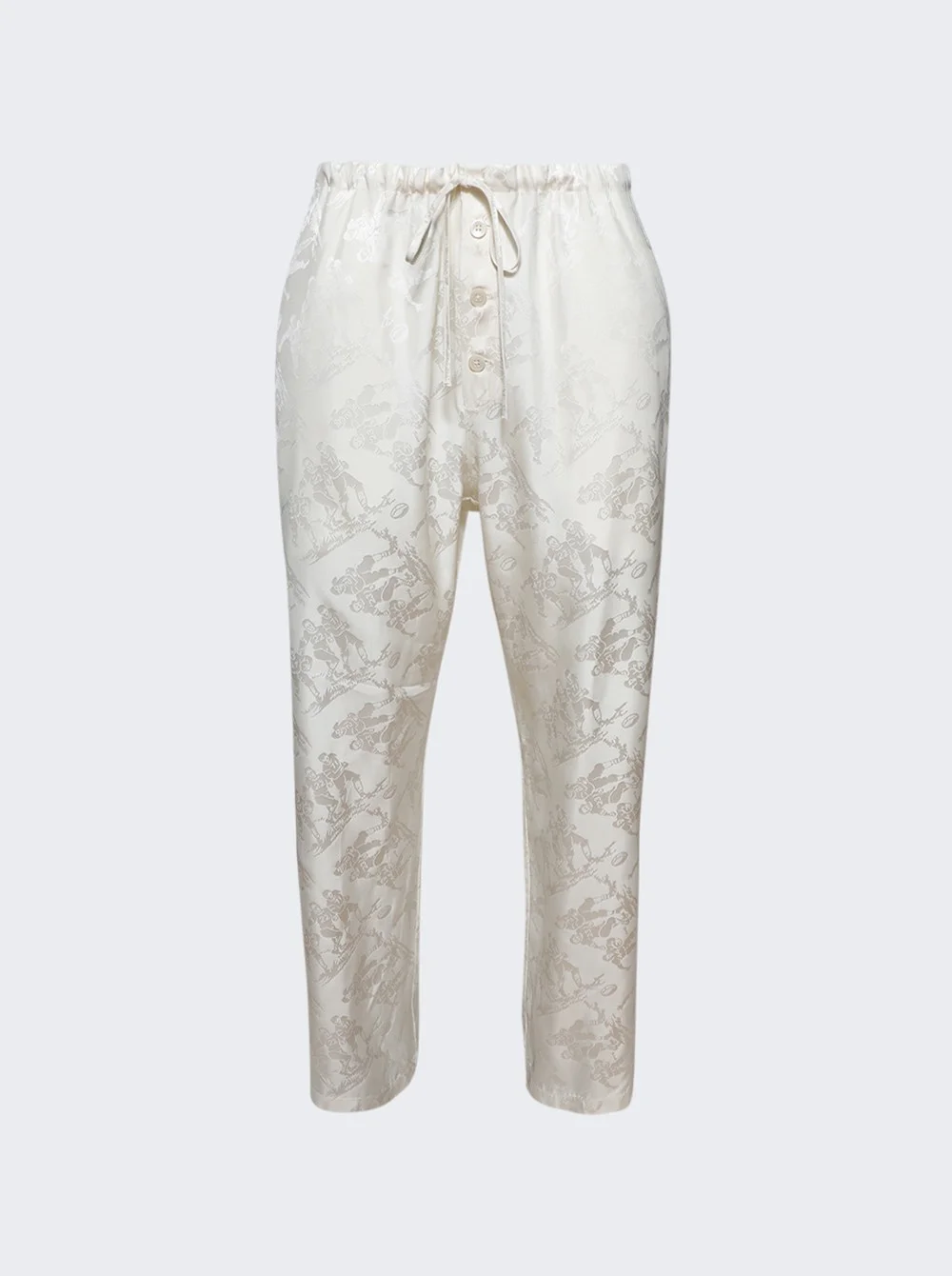 Details - Pajama pants inspired by deadstock yardage from the midcentury, woven with a pattern of football players - Drawstring waist - 87% Viscose, 13% Silk - Model is 6'1"/185cm and is wearing a size M Brand Style: MRF24BT042 Designer/Brand: BODE