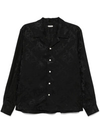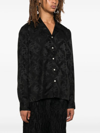 black satin weave football jacquard front button fastening camp collar long sleeves buttoned cuffs pleat detailing straight hem Size & Fit Model Measurements: Height: 1.87 m Bust/Chest: 90.0 cm Hips: 92.0 cm Waist: 69.0 cm Model wears size L Fabric and Care Designer Style ID: MRF24SH045 Designer Colour: BLACK Composition: Silk 13%, Viscose 87% Washing instructions: Dry Clean Only Made in Portugal