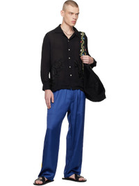 Sheer silk chiffon shirt. · Open spread collar · Button closure · Graphics embroidered at front and back · Pleated single-button barrel cuffs · Pleats at back yoke This item is part of a limited run of 96. Supplier color: Black
