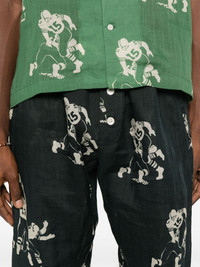 Football-pattern trousers Highlights - Black/beige - Linen - Slub texture - All-over football print - Semi-sheer construction - Button fastening - Drawstring fastening - Straight leg - Unlined Imported Composition Linen/Flax 100% SIZE & FIT Model measurements Height 6 ft 2 in(1.88 m) Bust/Chest 36.61 in(93 cm) Hips 35.82 in(91 cm) Waist 27.95 in(71 cm) FittingInformation Designed for a tapered leg, offering a loose unrestricted fit over the leg with a closer fit towards the ankle Adjust this piece’s waistband to your preference using the drawstring Made from a lightweight non-stretch fabric Washing instructions Dry Clean Only